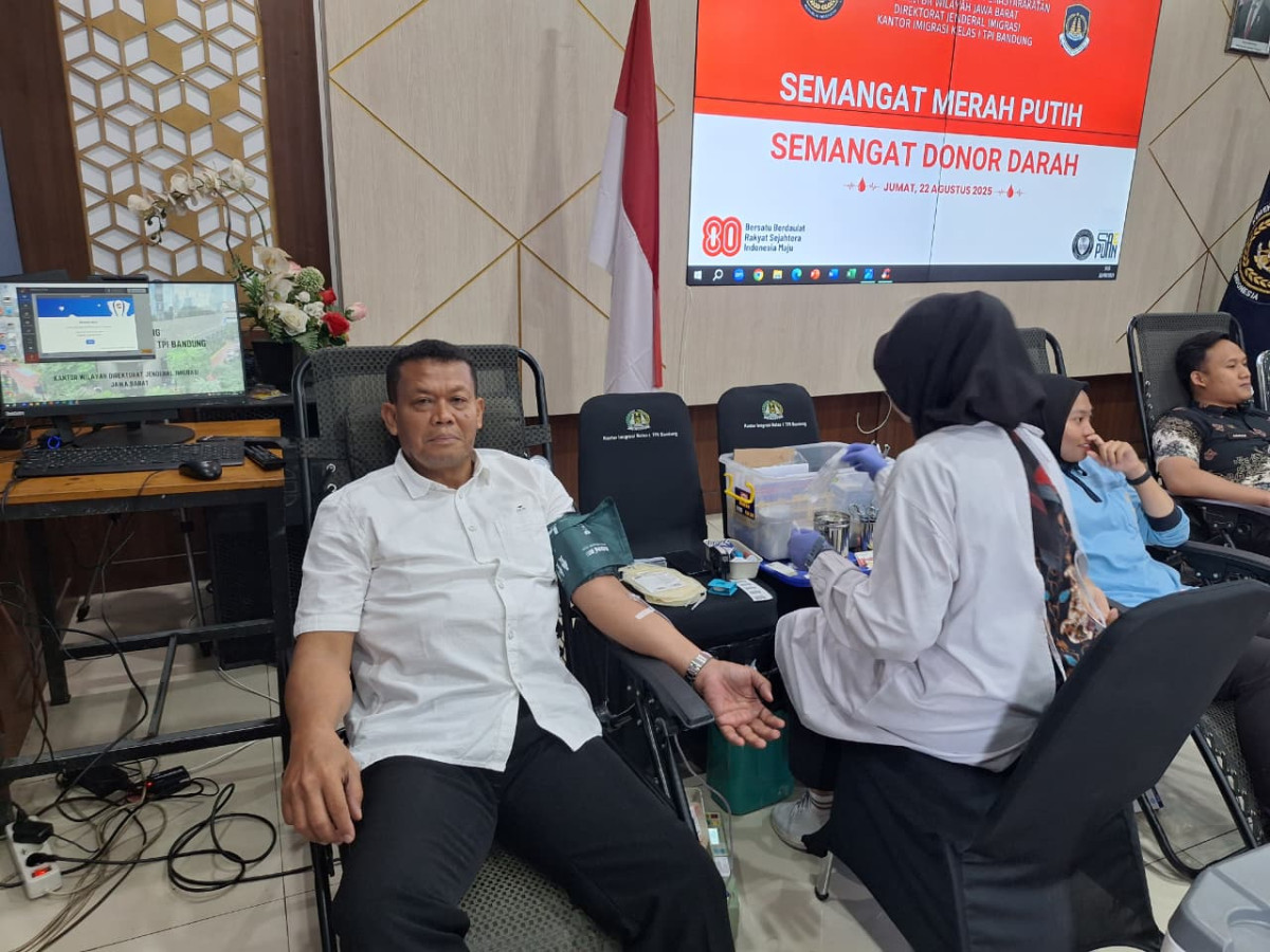 Bandung, 22 Agustus 2025 – Dalam rangka memperingati Hari Kemerdekaan Republik Indonesia ke-80, Lembaga Pemasyarakatan Narkotika Kelas IIA Bandung turut berpartisipasi dalam kegiatan donor darah yang diselenggarakan oleh Kantor Imigrasi Kelas I TPI Bandung pada Jumat (22/8).