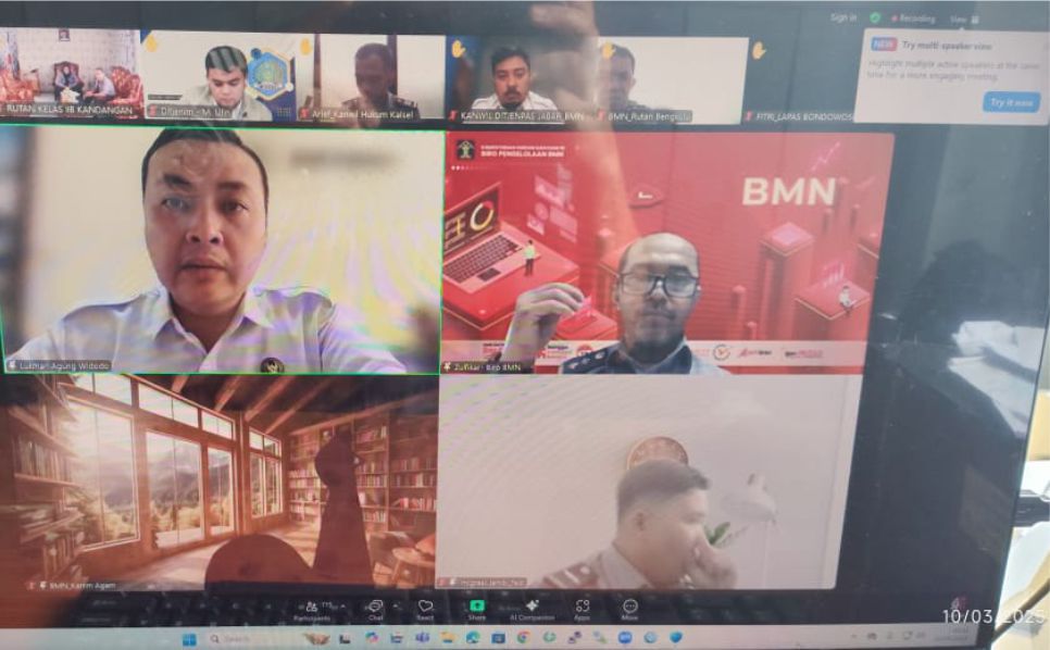 Bandung, INFOPAS – Dalam upaya meningkatkan pemahaman dan efektivitas pengelolaan Barang Milik Negara (BMN), staf BMN Lapas Narkotika Kelas IIA Bandung mengikuti sosialisasi percepatan penetapan status penggunaan dan penghapusan BMN yang diselenggarakan secara virtual (11/03).