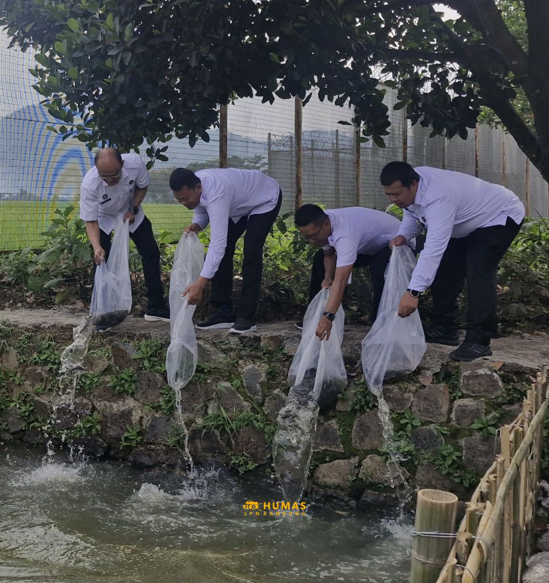 Wujudkan Ketahanan Pangan, Lapas Narkotika Kelas IIA Bandung Tebar Ribuan Benih Lele